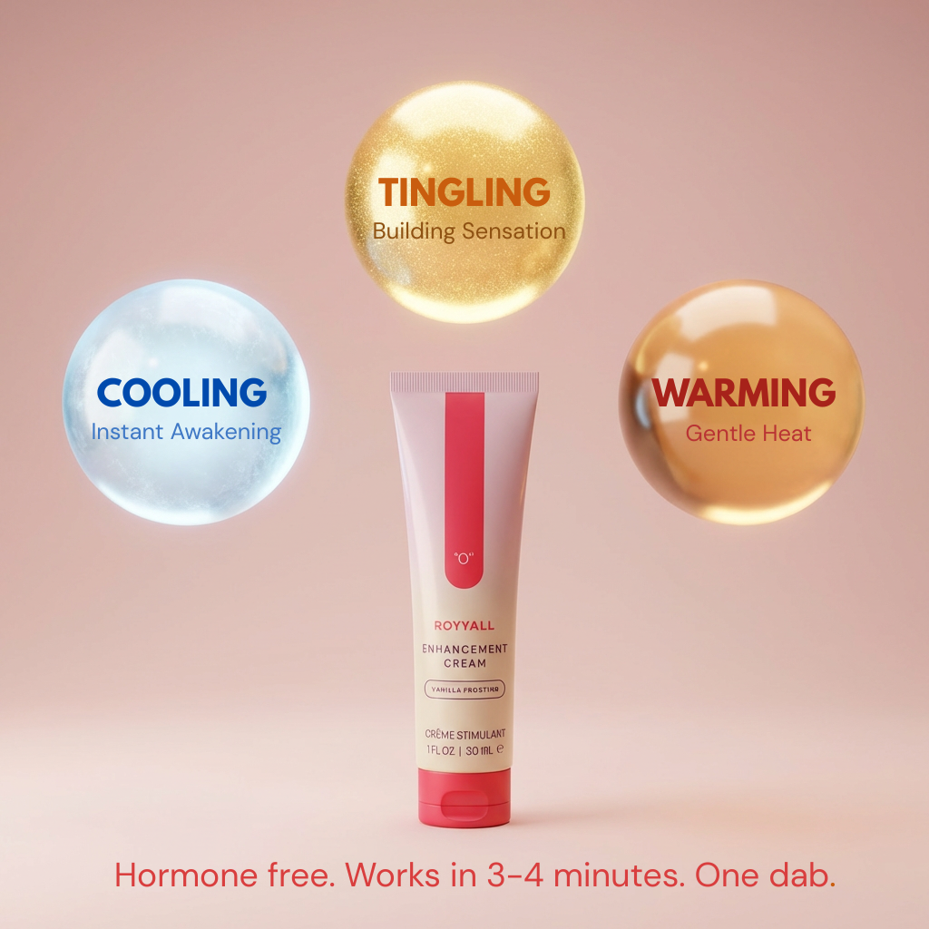 Whether you’re premenopausal, post-baby, or simply in a long-term relationship that’s lost a bit of spark, Royyall “O” Cream helps you feel again. Its gentle, natural formula awakens sensitivity, restores comfort, and brings back that deep connection you thought you’d lost.